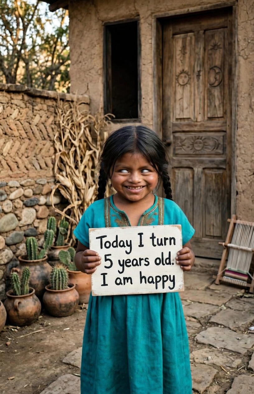 She stood by a wooden door frame, feeling its texture beneath her small hands as the warmth of the sun touched her face. Her mother was nearby, carefully braiding her hair with tenderness and care. In a soft voice filled with love, she whispered, “Today, my flower, you turn five.”
