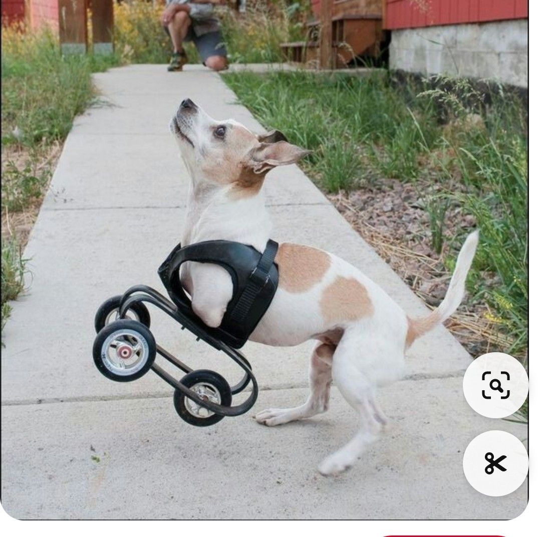 On a quiet street, a small dog stands on four tiny wheels where its back legs once were. A special harness supports its body, connecting to a miniature wheelchair that allows the dog to move freely despite the loss of its hind legs. Instead of sadness, what stands out most in this moment is courage.