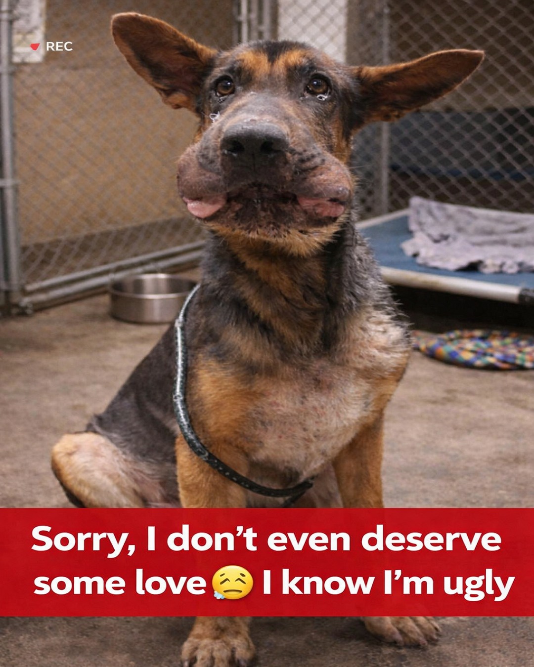 When he arrived at the shelter, his small body was already struggling. His face was badly swollen, his skin sore, and even standing seemed painful.