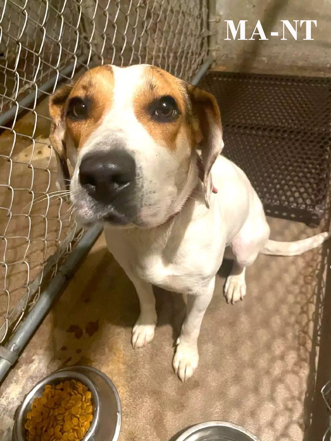 In the quiet of the shelter, a sweet dog sits patiently, gazing out with eyes full of longing. Her brown-and-white coat contrasts sharply with the sterile kennel walls, but her gentle expression speaks volumes. She may be surrounded by metal bars, yet her spirit remains warm, tender, and ready to love.
