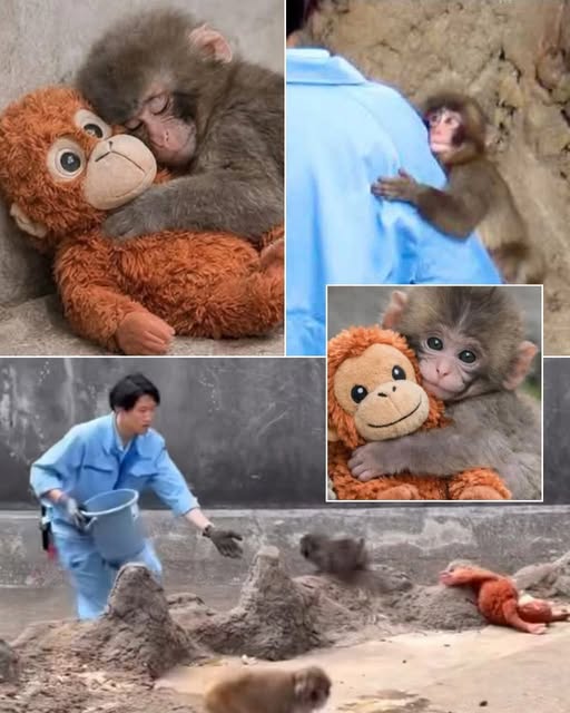 🐒🧸 Tiny Monkey, Big Heart: Orphaned Baby Macaque Finds Comfort in a Plush “Mom”