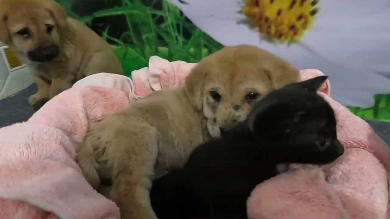 Title: Heartwarming Friendship: Puppies and Kittens Eat and Sleep Together