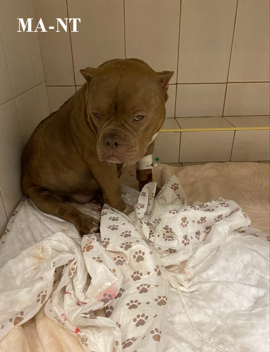Photographs of Titan show him sitting quietly on blankets, with medical lines carefully secured to his paw. Though he may look stern or even wary, his eyes reveal a dog in pain who is slowly learning to trust again. Staff describe him as resilient, yet in need of both medical attention and emotional support during this critical time.