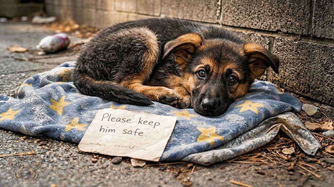 A small puppy was recently discovered alone on a quiet sidewalk, curled up on top of a child’s blanket with a simple handwritten note placed beside him. The message read, “Please keep him safe,” immediately capturing the hearts of those who saw the scene.