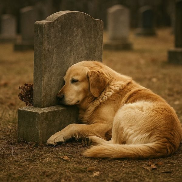 In a quiet memorial setting, a soldier stands in uniform before a monument dedicated to military working dogs who served in times of war. The statue on top of the stone structure depicts a proud war dog lying alert, symbolizing the courage and dedication of the animals who once stood beside soldiers in dangerous missions. Beside the soldier sits his own K9 partner. The dog faces the memorial as well, its posture calm and respectful, as if sharing the moment of reflection with the handler who stands over it. The soldier gently places a hand on the dog’s head while holding its leash in the other hand.