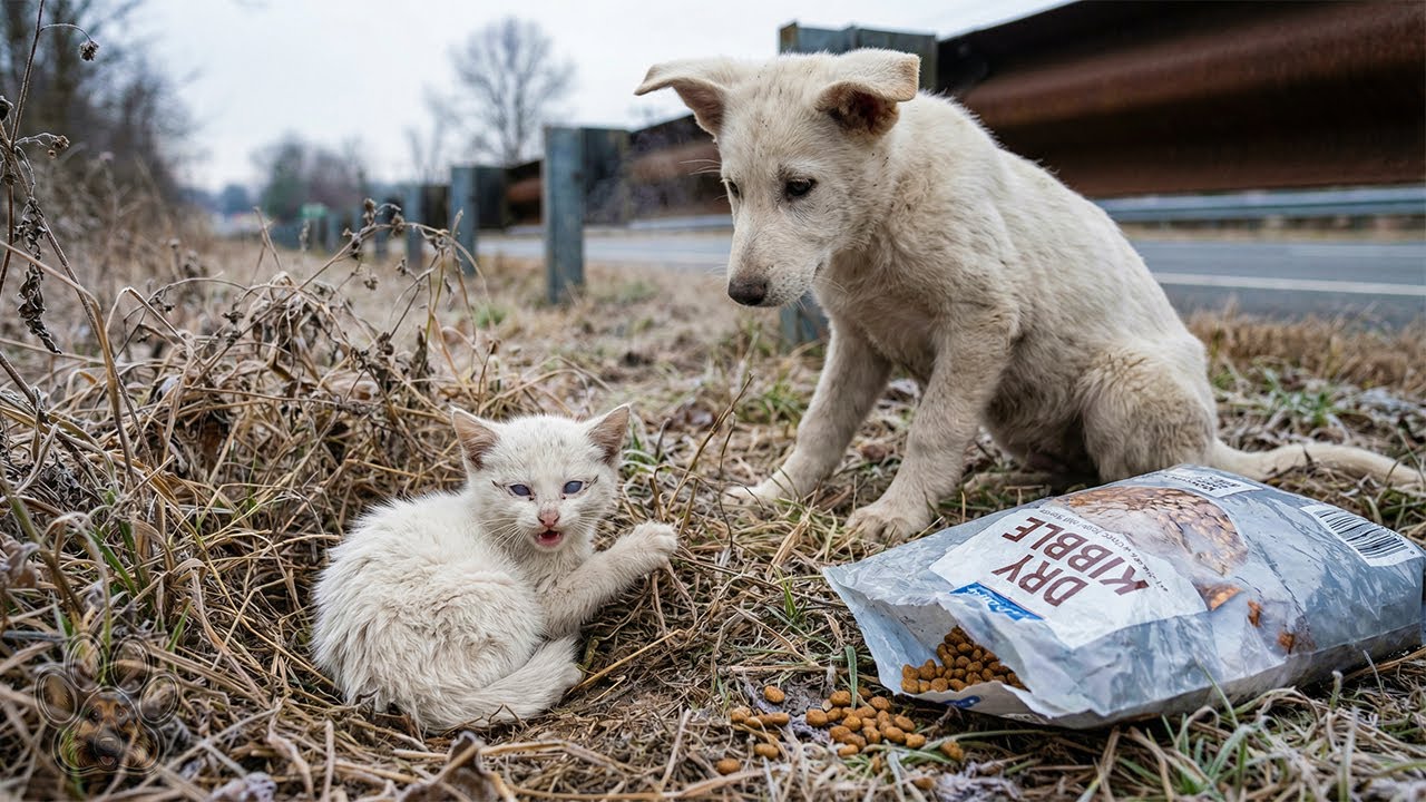 The pair was discovered along a rural roadside, where a tiny white kitten was found lying weakly in the grass. Just a short distance away stood a young shepherd puppy who appeared equally malnourished and exhausted. At first, rescuers believed the animals had simply been abandoned in the same area.