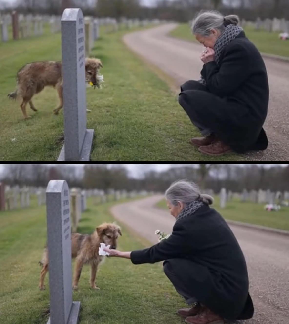 A Stray Dog Brings Flowers to a Widow at Her Husband’s Grave 🐕