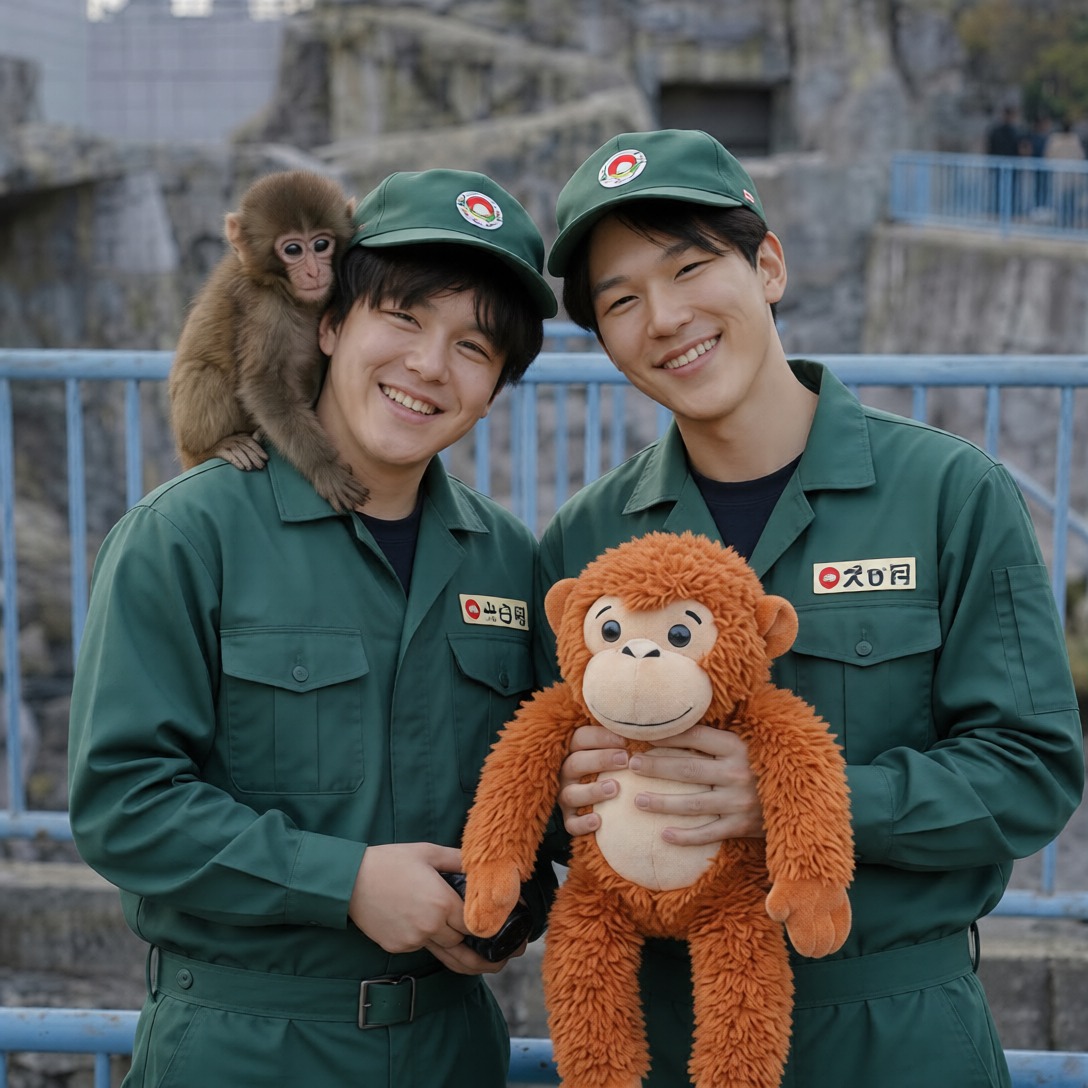 The baby monkey on the caretaker’s shoulder watched closely as he adjusted the toy. Its curious eyes followed every movement, almost as if it understood that this soft object might become something important.