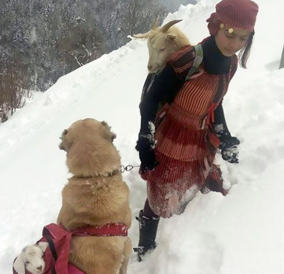 A Woman, Her Loyal Dog, and Two Baby Goats: A Heartwarming Journey Through the Snow