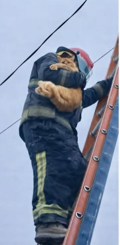 One wrong move could risk both lives. Yet moments like this show the incredible care many rescuers take when dealing with animals in distress. The firefighter’s calm posture and secure hold demonstrate experience and empathy. Rather than treating the rescue as a minor detail, he holds the cat gently but firmly, ensuring it will not panic or fall while he climbs down the ladder.