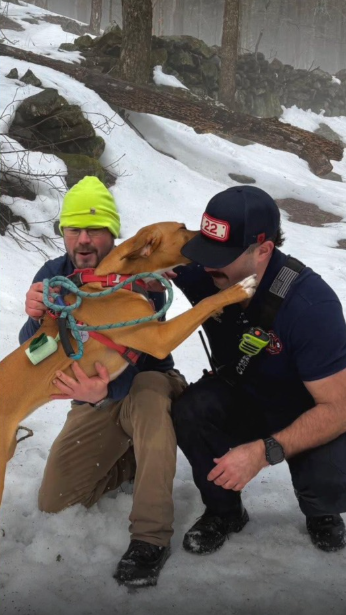 In the middle of a snowy forest, a tense rescue operation unfolded after emergency responders received a report about a dog trapped deep inside a rocky ravine.