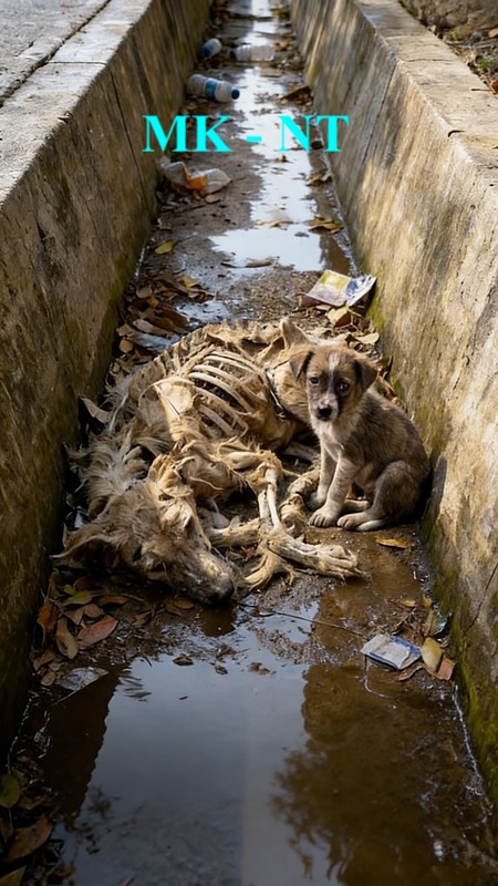 In a forgotten drainage canal on the side of a quiet road, a heartbreaking scene unfolded — one that many people who saw the image could never forget.