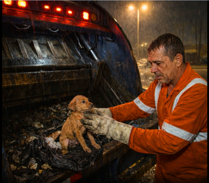As the worker lifted another load of garbage into the back of the truck, he noticed a small movement among the trash bags and debris. At first, he assumed it was simply a bag shifting due to the rain or the truck’s motion. However, when he looked closer, he realized it was something alive.