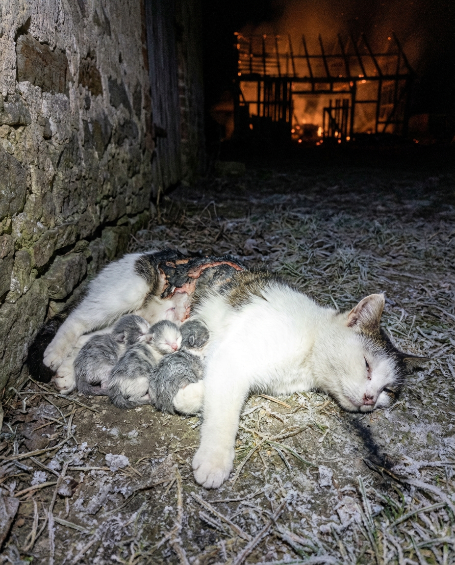 When rescuers tried to lift her, she bit the firefighter’s glove. Not out of fear — she simply refused to be separated from her kittens.