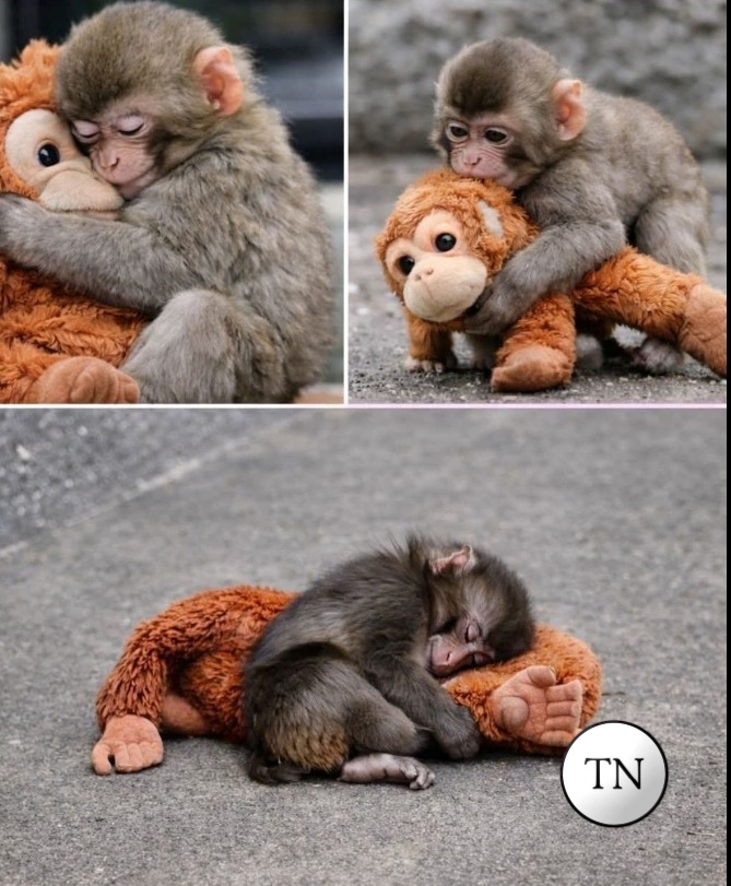Little Punch wrapped his arms tightly around his soft orange plush toy—the same toy that has comforted him since the day he was rejected by his mother. 🧸🐾