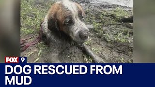 Rescuers Dig Through Deep Mud to Save a Dog Trapped Up to Its Neck