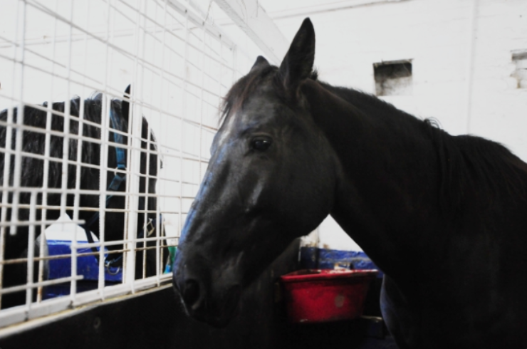 Inside a quiet veterinary clinic, an emotional moment unfolds between a mother horse and her fragile newborn foal.