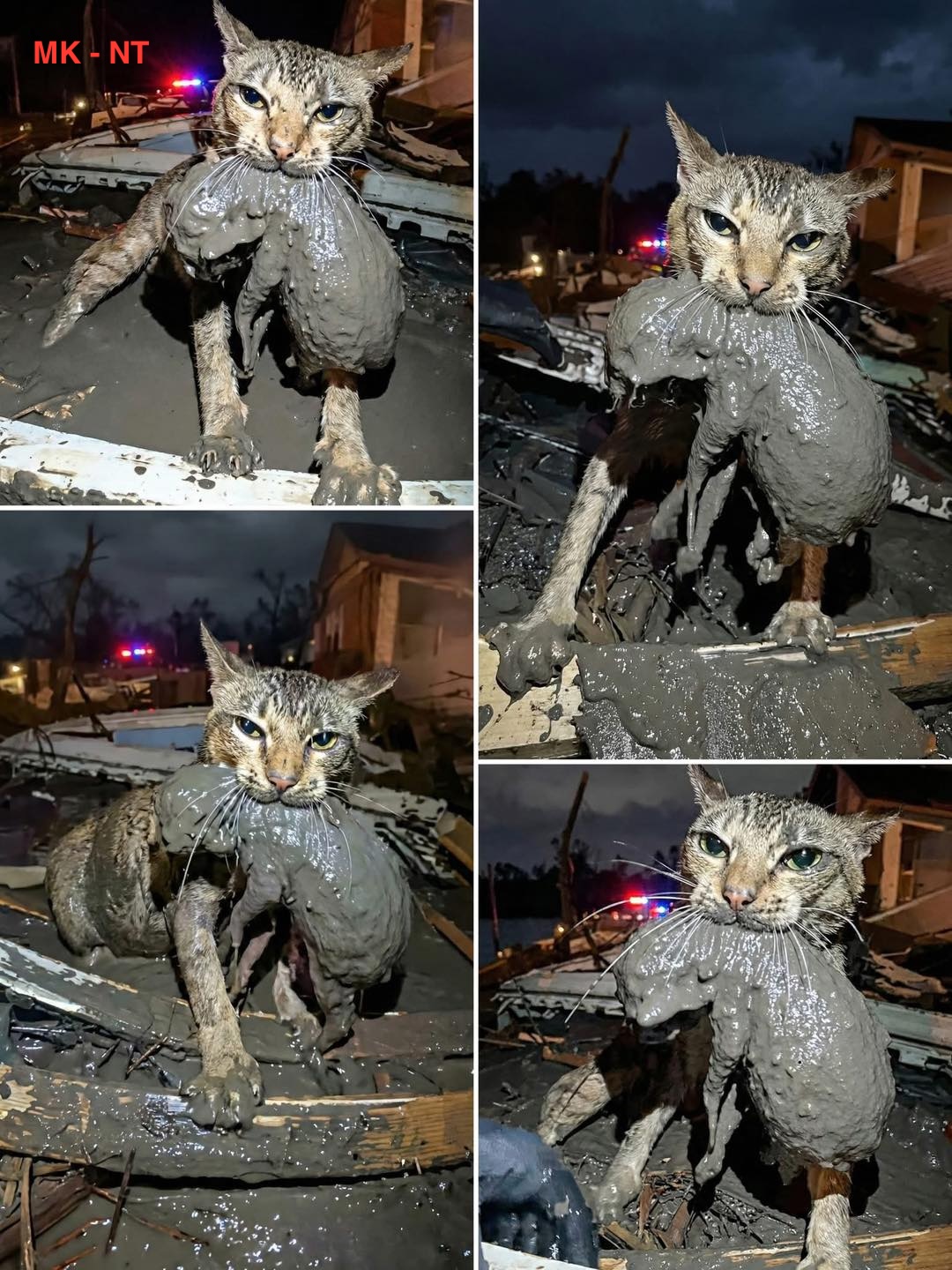 A mother cat was found completely covered in mud, her small body exhausted from the struggle to survive. ⛈️🐾
