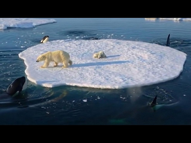 Polar Bear Trapped on Melting Ice as Orcas Circle Below: A Dramatic Moment in the Arctic