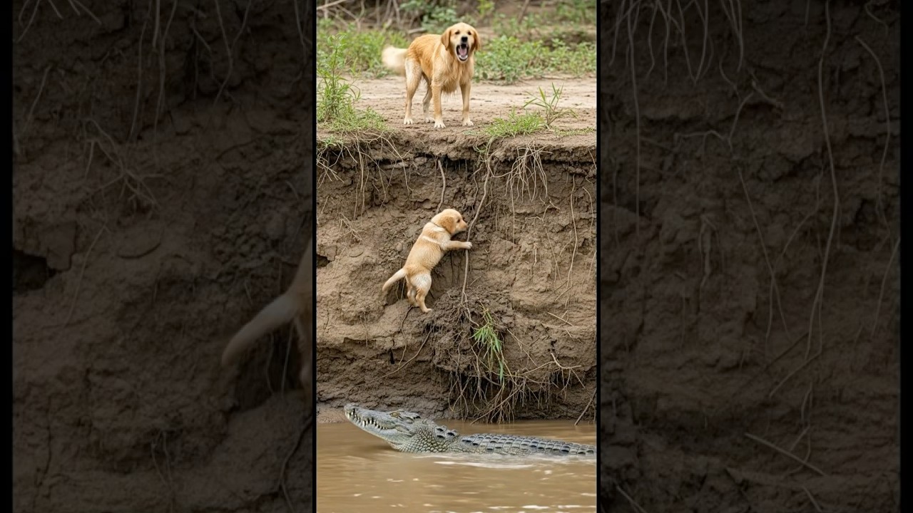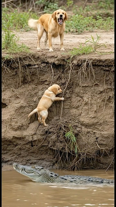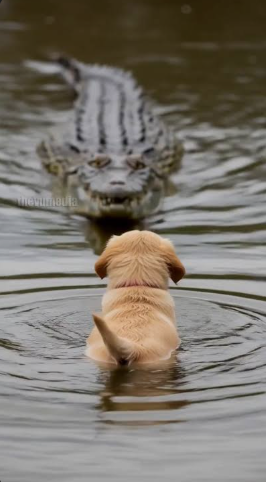 In a dramatic and heart-pounding moment near a muddy riverbank, a small puppy found itself facing one of nature’s most dangerous predators.
