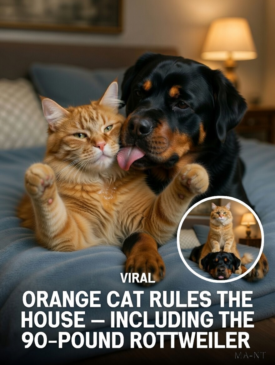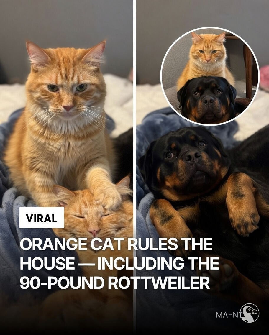 Friendship comes in all shapes and sizes, and sometimes, it’s a little surprising. Bubba, a tiny orange cat with the heart of a lion, has formed an extraordinary bond with Norman, a 90-pound Rottweiler. Despite the size difference, Bubba demonstrates fearless confidence that never fails to astonish.