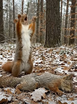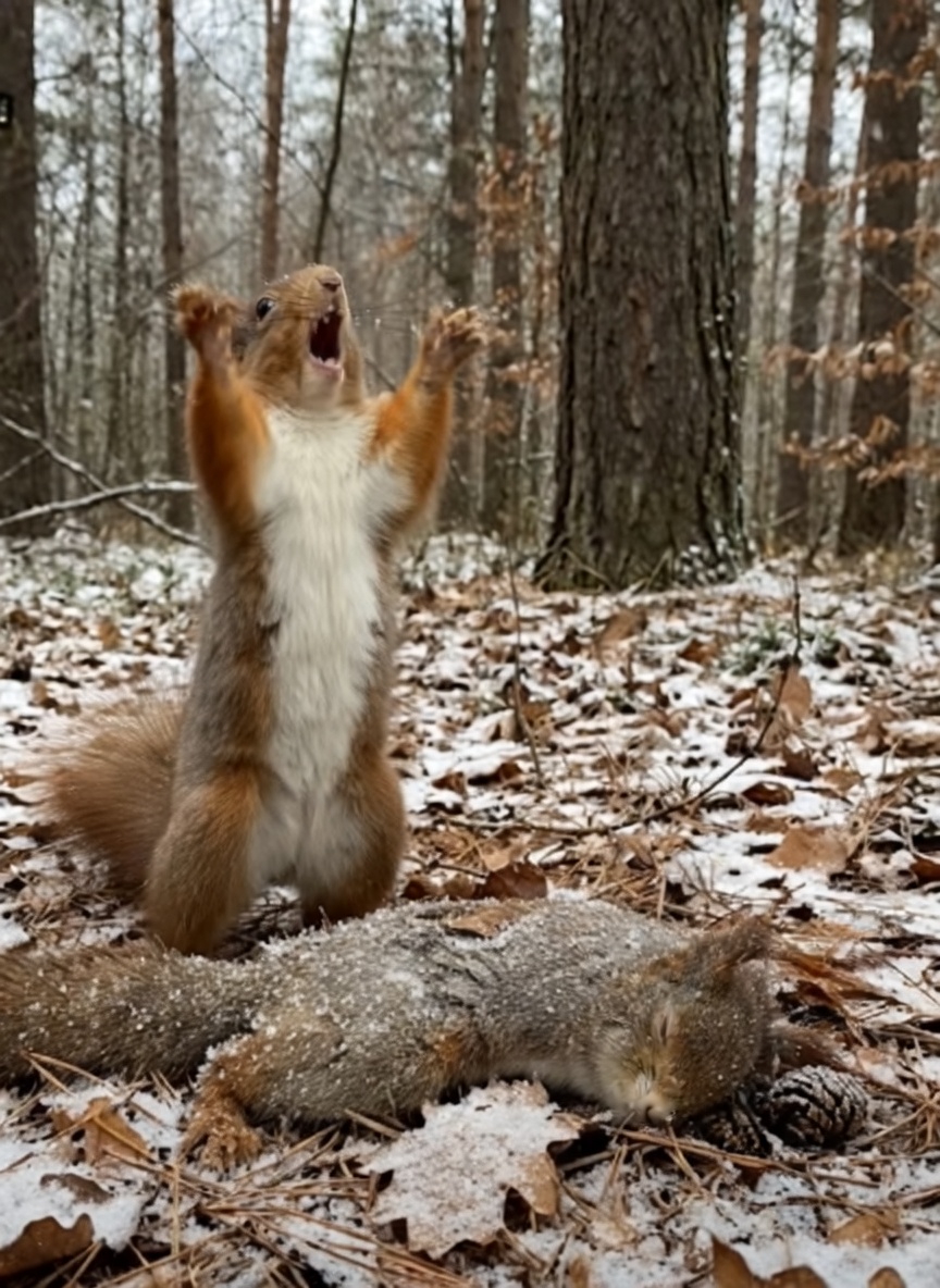 In this emotional video, a squirrel appears to cry out in deep sorrow after losing its companion. The scene is quiet and heartbreaking, capturing a moment that feels filled with grief and longing. Though the moment is presented through artistic storytelling, it reminds viewers of something important — that animals, like humans, form bonds and connections that matter deeply.