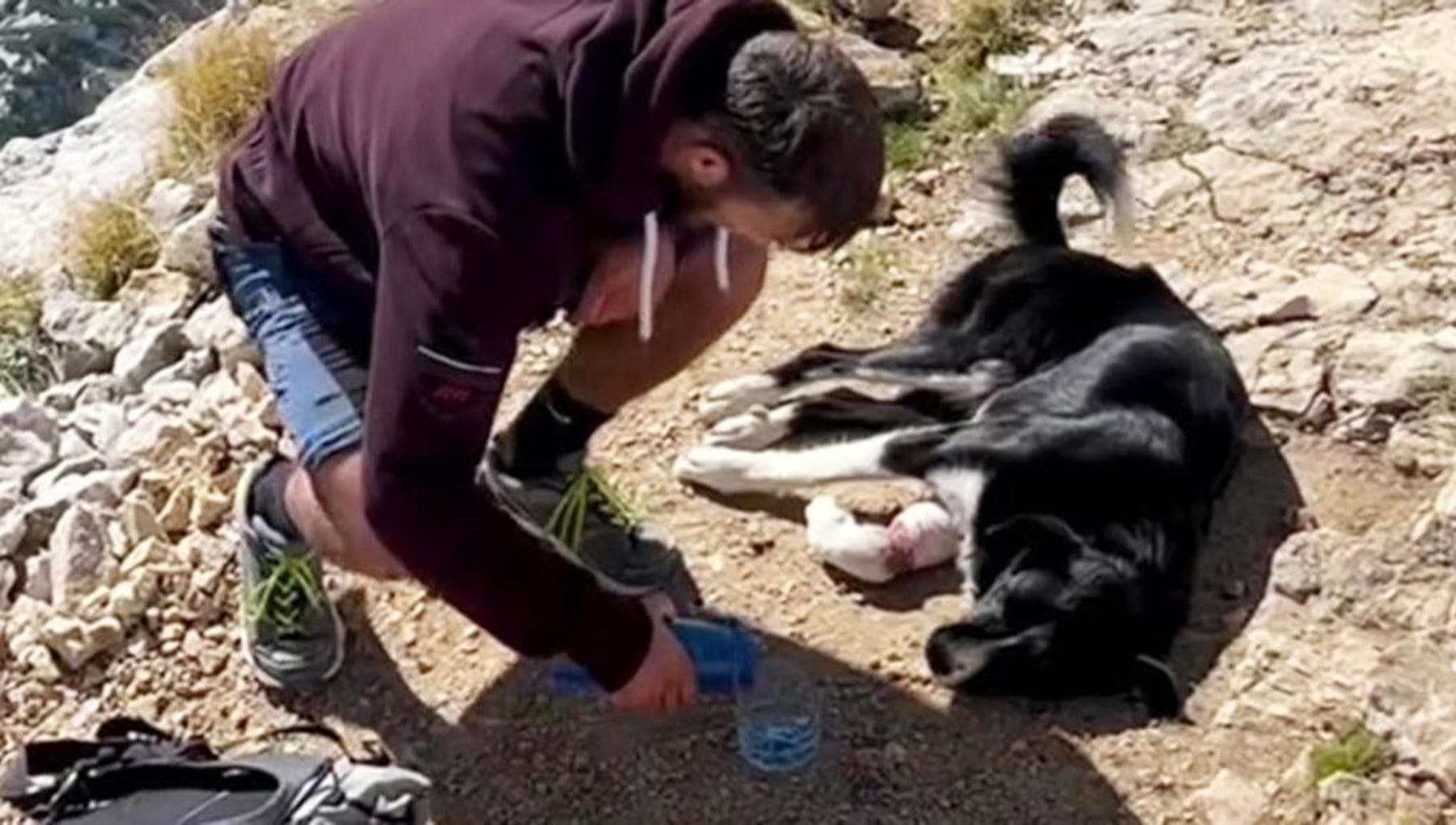 After hours of climbing a rugged trail, nearly five hours into their hike, the couple spotted something heartbreaking near the top of the mountain: an injured dog struggling to move.
