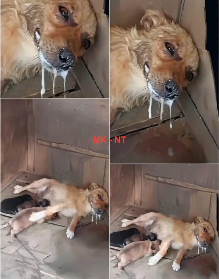 She could barely move, yet she stayed there—quietly enduring the pain—so her puppies could have one more meal.