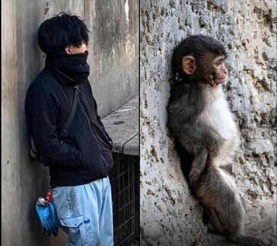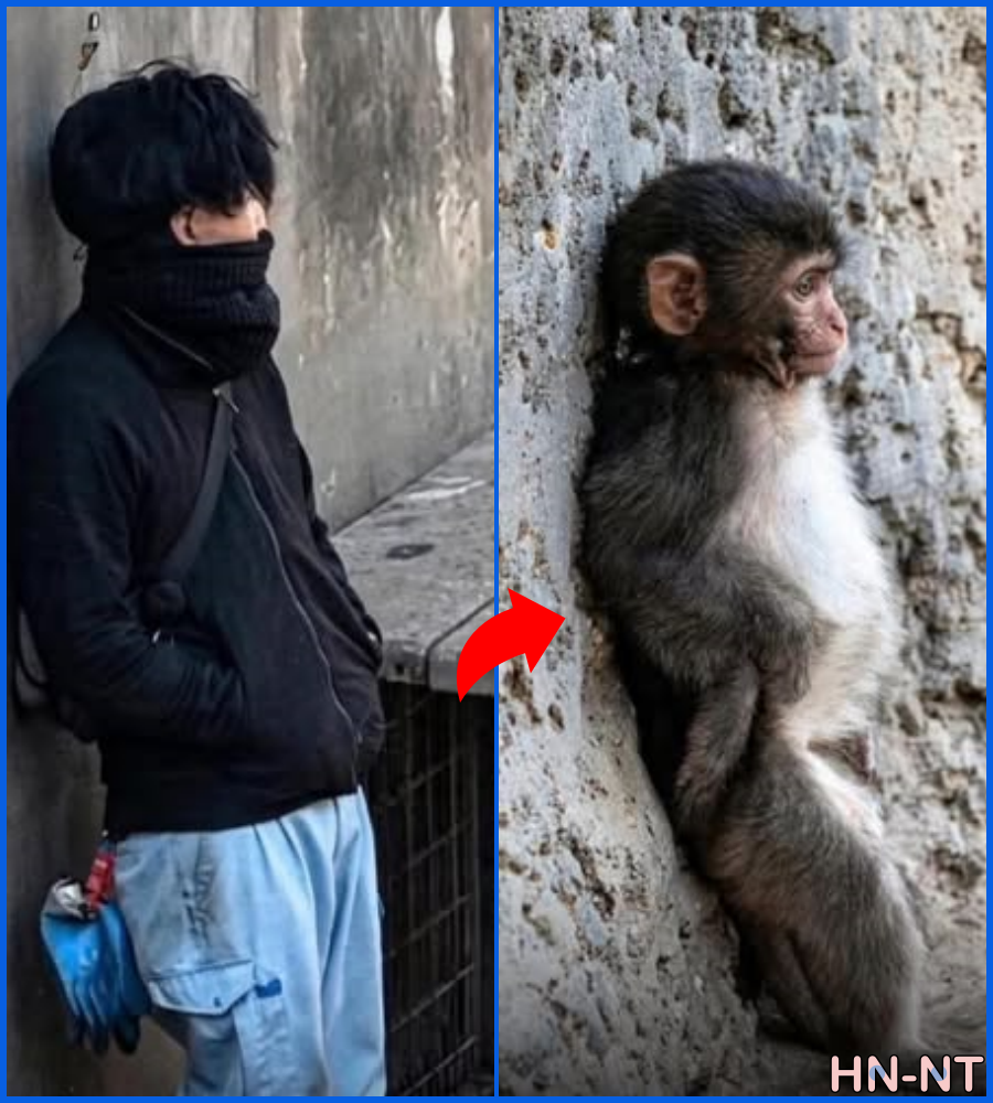 One day, visitors noticed something adorable about a young macaque named Punch-kun. While resting near a wall, he was leaning back in a relaxed pose—arms down, body slightly tilted—looking completely at ease.