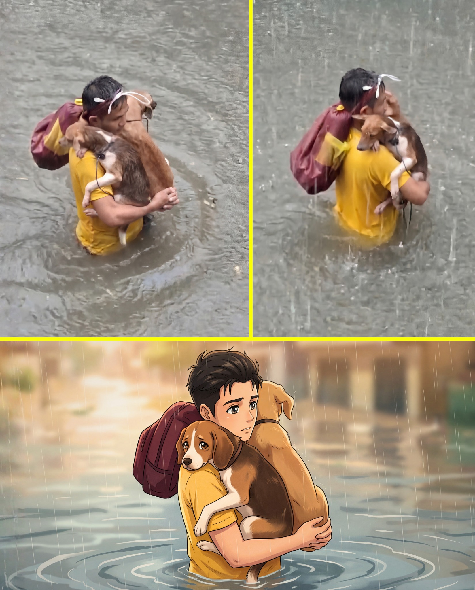 Có thể lĆ  hƬnh įŗ£nh về mį»™t hoįŗ·c nhiều ngĘ°į»i vĆ  thį»§y vį»±cCarefully, he lifted his dogs into his arms, holding them close to his chest so they wouldn’t be afraid. 🐾