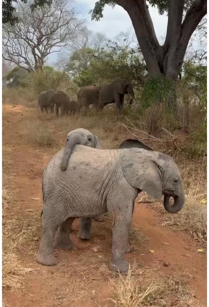 But what makes the moment even more adorable is what the baby elephant is holding.