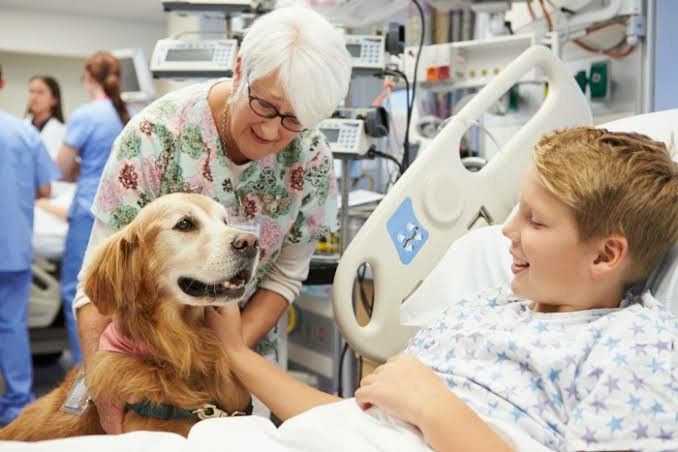 Therapy dogs often visit hospitals to provide emotional support to patients, especially children who may feel frightened, lonely, or overwhelmed during long treatments. Their calm nature, warmth, and unconditional affection can help reduce stress, ease anxiety, and bring a sense of normal life back into difficult environments.