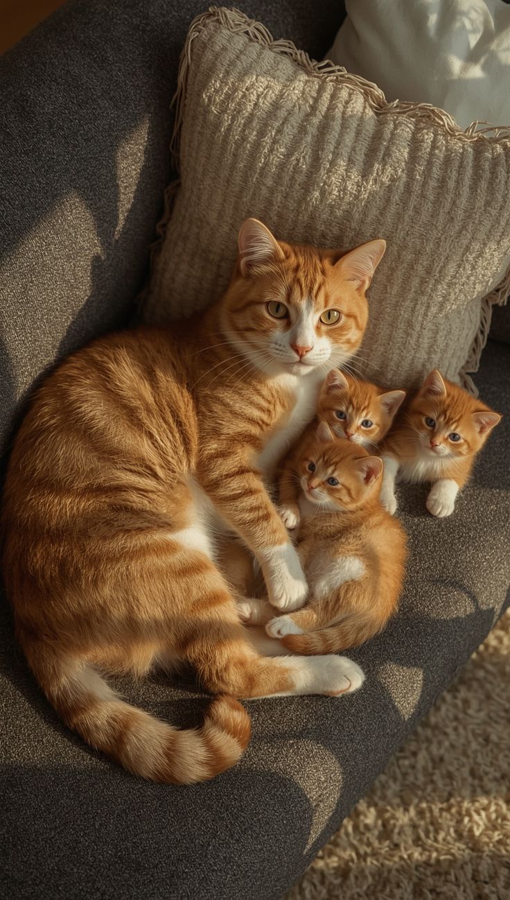 This kind of behavior is natural for cats. Mother cats are incredibly protective and attentive, especially during the early weeks of a kitten’s life. They often keep their young close, providing warmth, comfort, and safety as the kittens grow stronger.