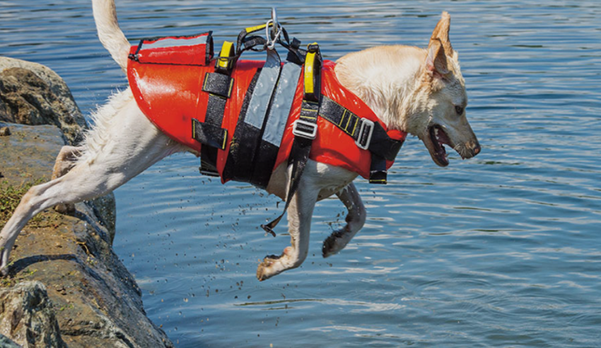 The person in the water can grab onto it, gaining support and stability while the dog maintains its position. In real rescue situations, this can give struggling swimmers the precious time they need until additional help arrives.
