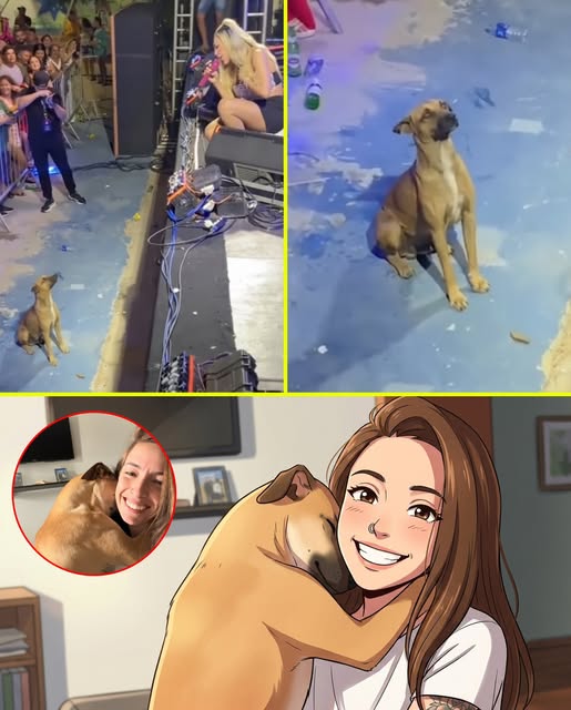 Among the lights, music, and cheering fans, the little dog stayed there, watching her closely.