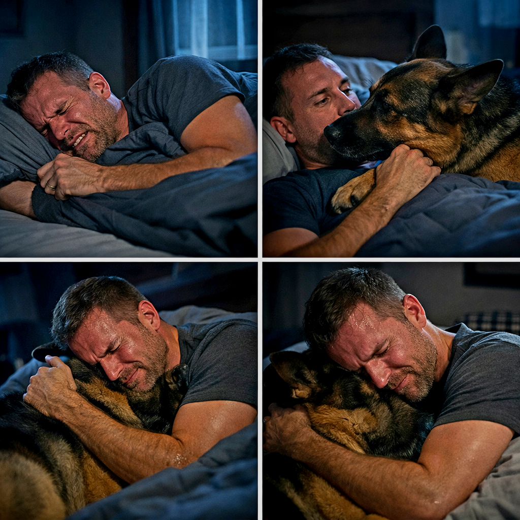 The loyal companion jumped onto his chest, gently nudging him, pressing his weight down with purpose—trained instinct meeting deep love. Again and again, he refused to stop until Robert finally woke, gasping, but safe… with Max right there in his arms.