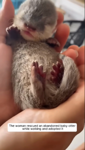 On a quiet riverbank, a tiny baby otter was found alone, its soft cries echoing through the calm air. The little creature looked frightened and confused, wandering near the water as if searching desperately for its mother. Without her protection, the baby otter was incredibly vulnerable. It was far too young to hunt, swim long distances, or survive the dangers of the wild on its own.