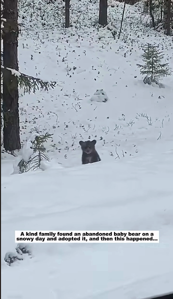 Deep in a quiet forest blanketed with snow, a tiny bear cub was spotted wandering alone. The small cub moved slowly through the cold, calling out softly as if searching for its mother. But the forest remained silent. Without her protection, the little bear looked confused and frightened, far too young to survive on its own in such a harsh environment.