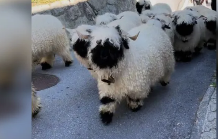 Each year, in the heart of Switzerland, a charming and time-honored tradition unfolds as a flock of Valais Blacknose sheep makes its way through a quiet alpine village. Known as one of the cutest sheep breeds in the world, these animals are instantly recognizable by their striking black faces, ears, knees, and feet, contrasted against their thick, cloud-like white wool.