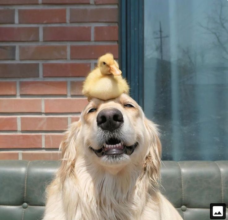 For the chick, the dog’s head may simply look like a warm and comfortable perch.