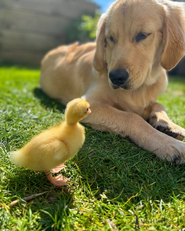 The contrast between the two animals makes the scene especially charming. The dog’s large nose and soft fur make the chick look even smaller and fluffier by comparison.
