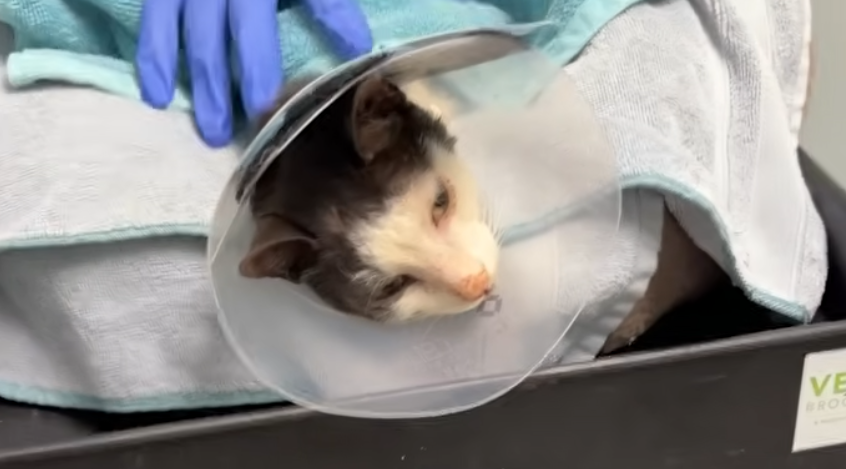 Once brought into safety, the kitten’s fear slowly began to fade. Warmth replaced the cold ground it had known for so long. Gentle hands offered reassurance instead of danger. Food, water, and care gave it strength again. And perhaps most importantly, it was no longer alone.