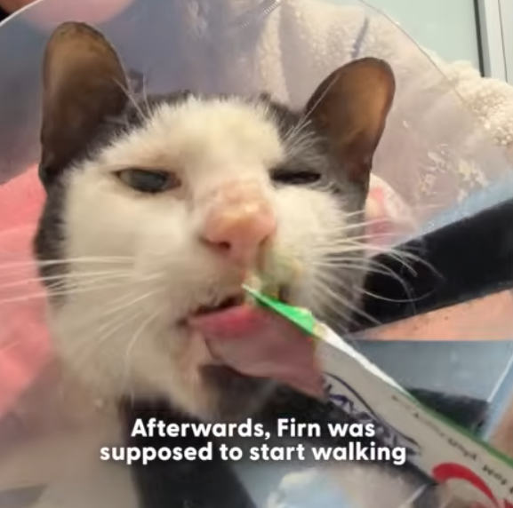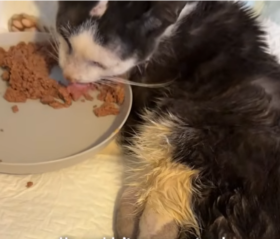 In just a short time, the same cat that had cried out in desperation began to show signs of trust. Its eyes softened, its body relaxed, and its cries were replaced with quiet purrs. The shift from fear to comfort was a powerful reminder of how quickly a life can change when compassion steps in.
