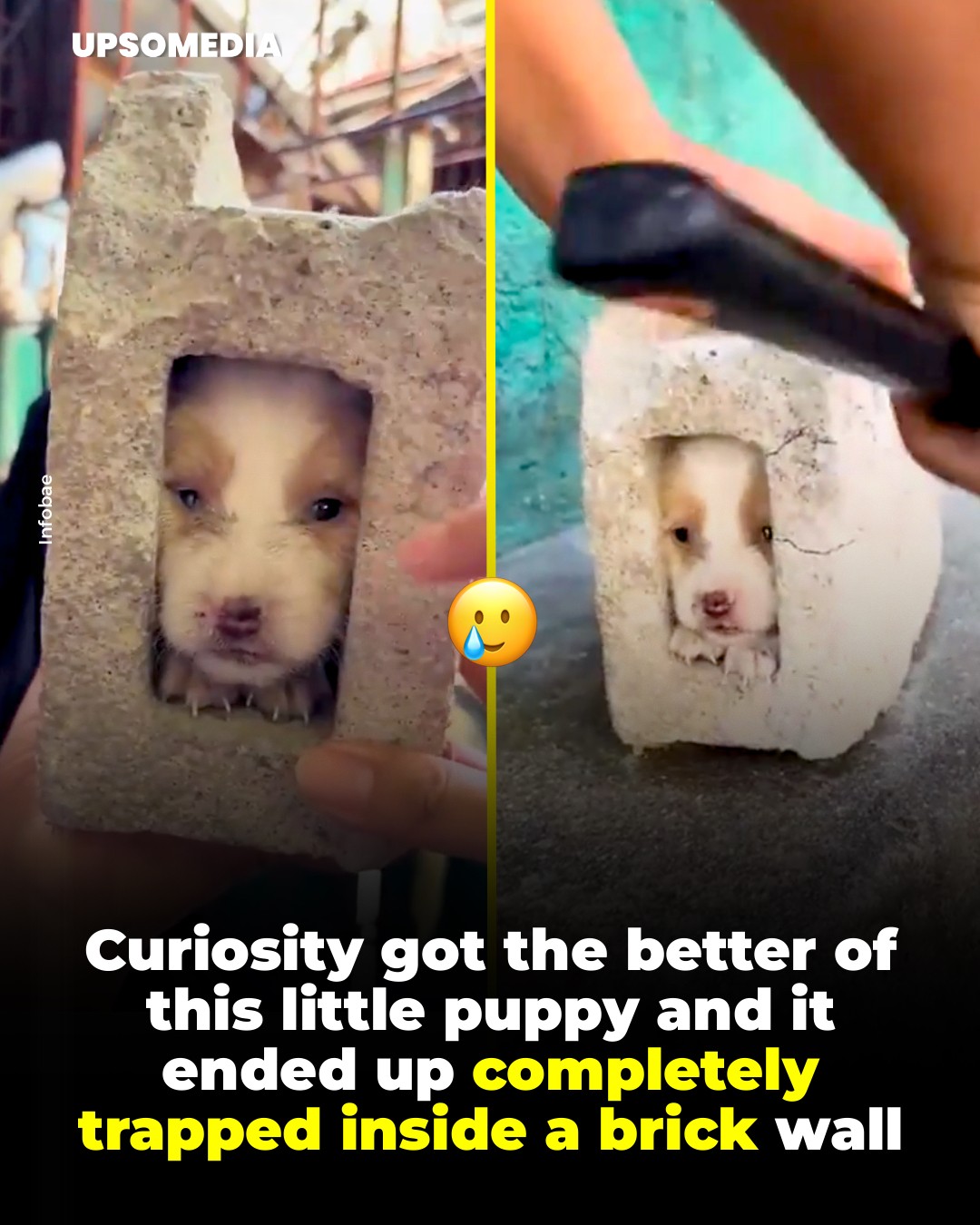Carefully and patiently, they used a hammer to break the brick apart, making sure not to hurt him while freeing his tiny body from the tight space. 🔨🐶
