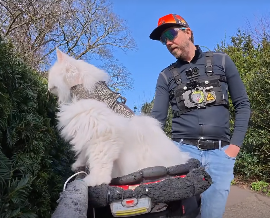 The camera angle adds a unique layer to the experience. Instead of watching from the outside, viewers are immersed in the kitten’s journey—seeing exactly what it sees. Every small movement, every shift in light, and every passing detail becomes more vivid and meaningful. It transforms a simple bike ride into an unforgettable visual experience.
