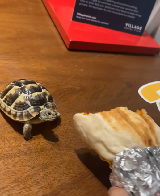 In the end, this charming scene is more than just a funny encounter. It’s a glimpse into the personality of a tiny creature with a big appetite and an even bigger sense of adventure. And honestly, who could resist smiling at a tortoise that clearly believes every snack in sight belongs to it? 🐢💛✨