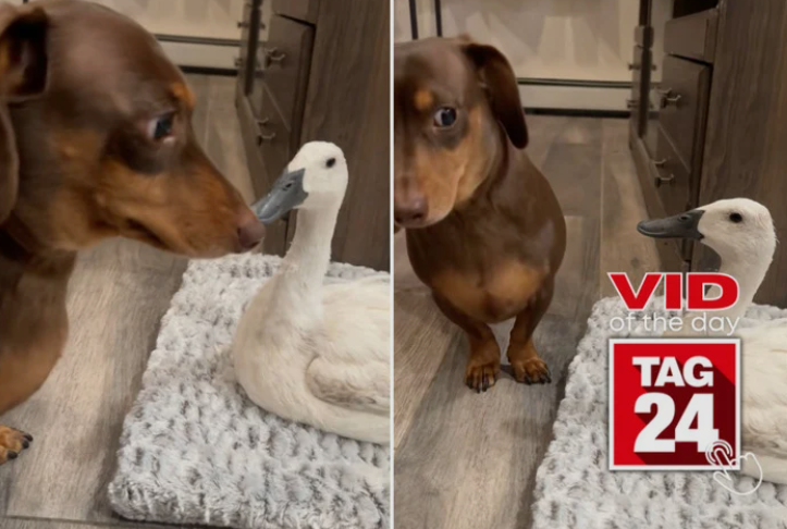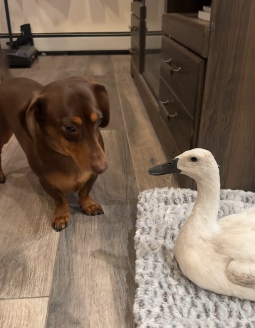In a scene that feels straight out of a comedy sketch, a playful dog and a fearless little duck find themselves in an unforgettable face-off—right in the middle of a cozy home. What begins as a simple encounter quickly turns into a hilarious and heartwarming clash of personalities.