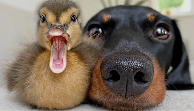 What follows is a delightful exchange of barks and quacks. The dog circles, stepping closer and then backing off, unsure whether to play or retreat. Meanwhile, the duck responds with bold little movements, as if declaring, “I’m not going anywhere.” The contrast between the dog’s playful curiosity and the duck’s fearless attitude creates a dynamic that is both funny and incredibly endearing.