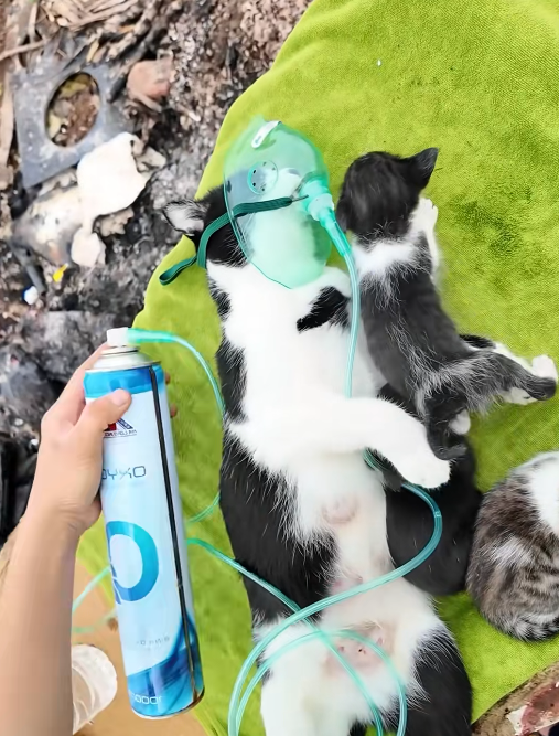 One by one, the kittens were scooped into warm blankets, while the mother, too sick to resist, allowed herself to be carried to safety. 😢💛