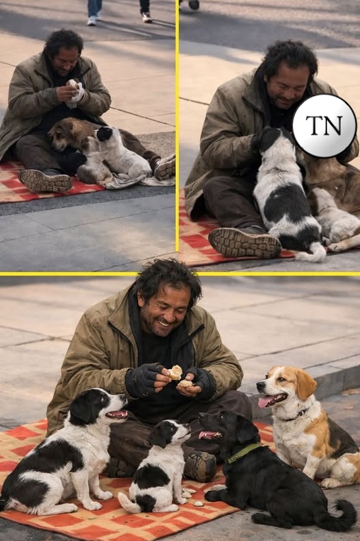 Yet when the quiet circle of street dogs gathered around him, something remarkable happened.